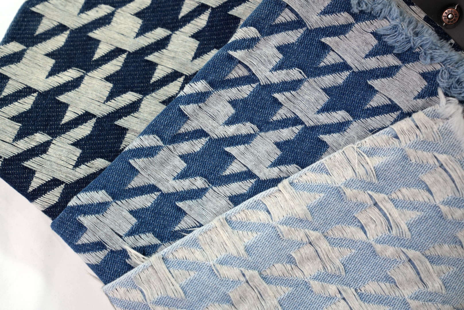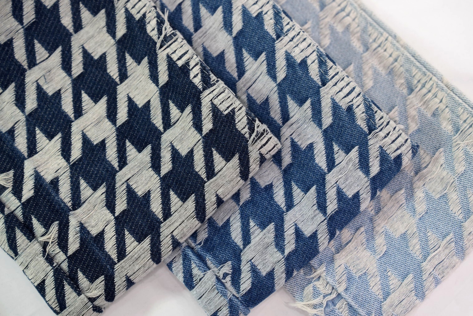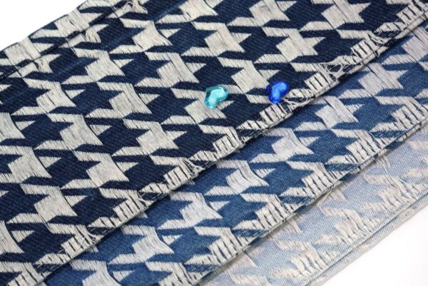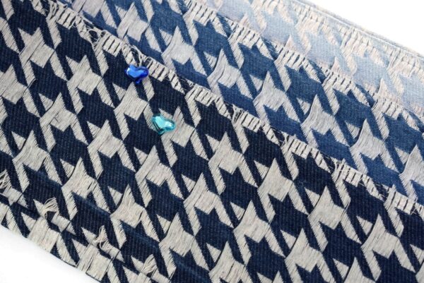 Jacquard denim brings the classic houndstooth pattern to life, blending textured fabric with timeless check charm.